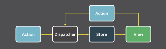 flux는 MVC의 양방향 데이터 바인딩을 문제점 삼아 action -> dispatcher -> store -> view라는 단방향 구조를 만들게 되었다.