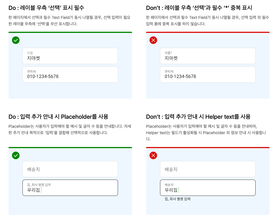 텍스트 필드를 디자인 시스템으로 만들기 위해서는 다음과 같은 규칙들이 필요할 것이다.