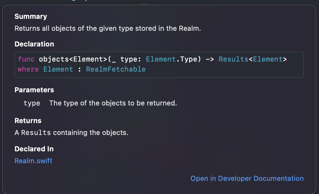 objects는 Realm에 저장된 모든 objects를 반환한다고 나와있다.