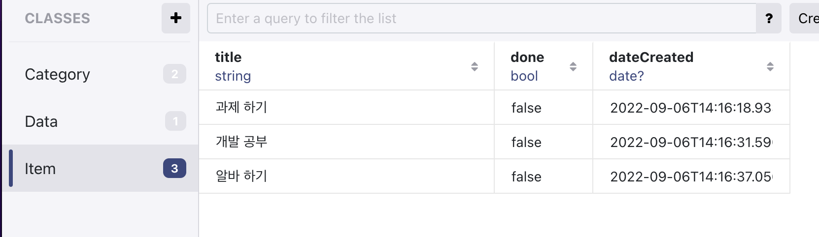 let items = List<Item>() //Item 모델과 연결(List는 배열을 의미)