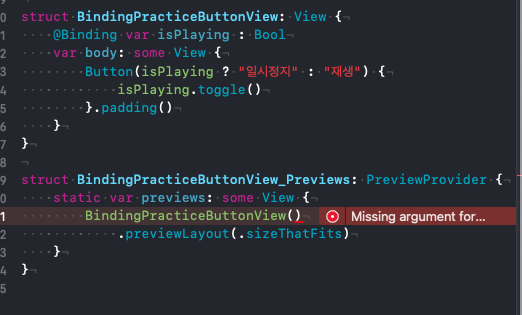 추가로) 하위 뷰에서 Binding을 사용하면 Preview에서 에러가 발생하게 된다.
