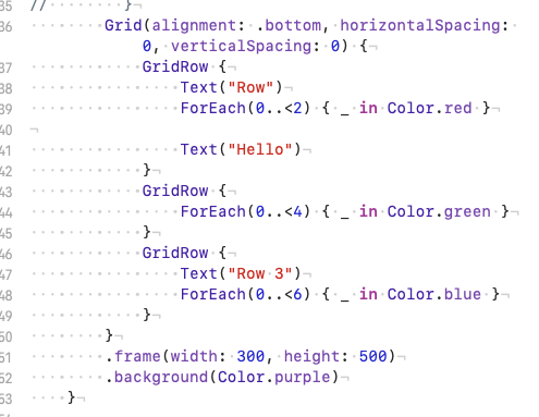Grid는 VStack, GridRow는 HStack과 어느정도 비슷한 점을 공유한다고 생각하니 이해가 쉬웠다.