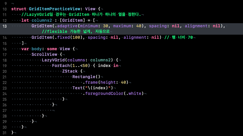 SwftUI Grid에 대해서 공부하면서 제일 어려웠던 GridItem이다..