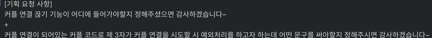 바로 "커플 연결에 혼선이 있으면 API 호출을 통해 받아오는 커플 정보를 정확히 받을 수 없다." 는 것이다.
