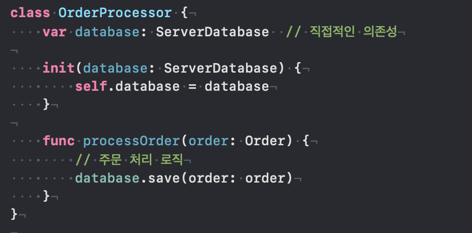 이걸 해결할 수 있는 것이 protocol을 활용한 의존성 역전 원칙이다.