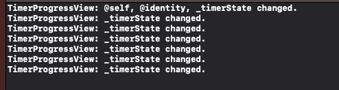 먼저 ObserbedObject에 종속성을 가지고 있는 경우 타이머가 흐름에 따라 데이터가 변화되는 것을 알 수 있다.