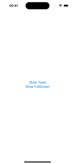 이렇게 별도의 UIWindow를 만들었기 때문에 기존 UIWindow에서의 화면 전환이라는 전혀 관계 없는 사이가 되었다. 결과적으로 제일 위에 있는 토스트 메세지를 만들 수 있었던 것이다.