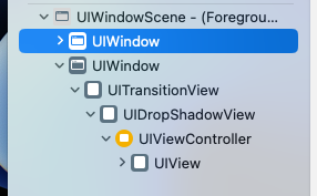 추가적으로 뷰 계층을 보면 다음과 같다. 만들었던 것 처럼 하나의 UIWIndowScene에 두 개의 UIWindow가 존재하고 있는 것을 볼 수 있다.